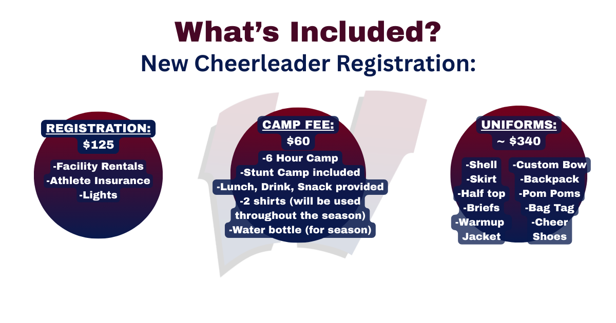 The Cost for Cheer registration for the Fall 2026 season is $125