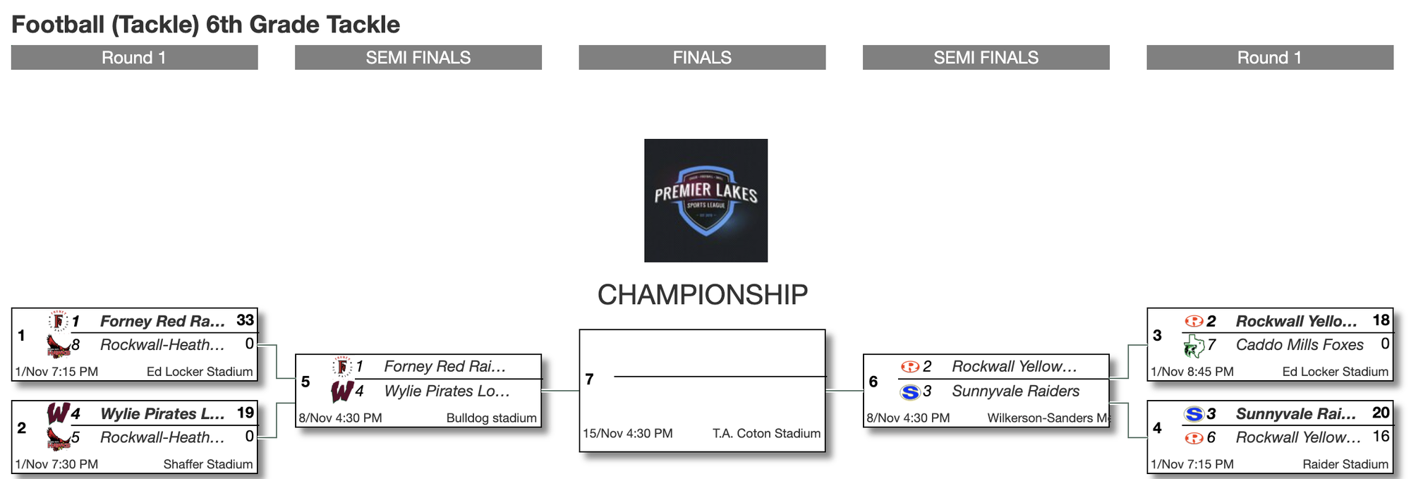 2025 Tackle Playoff Brackets